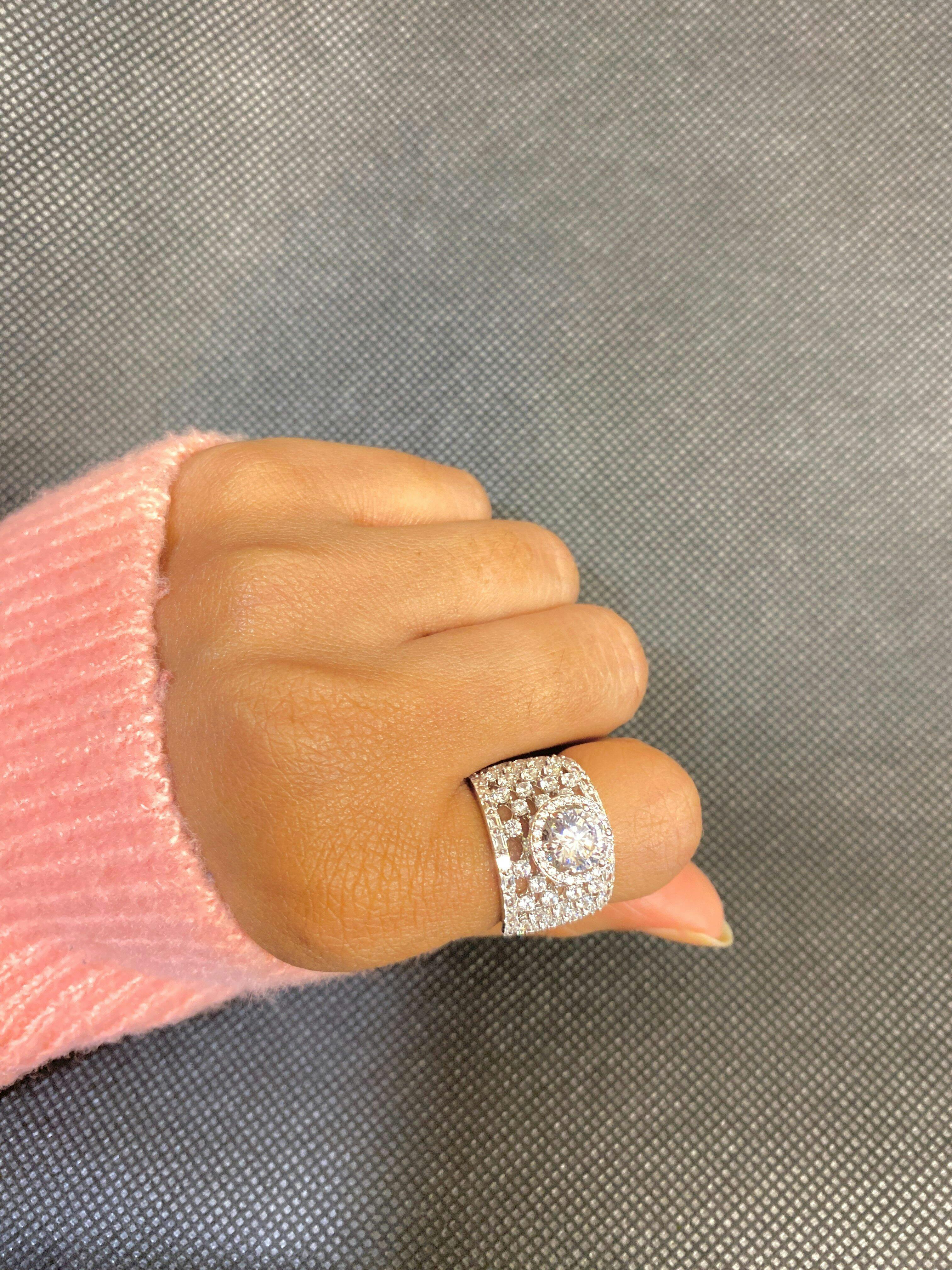 This fashionable, trendy, and statement ring is made from metal alloy, studded with sparkling American diamonds and is made to shine with a high-quality rhodium polish for a glamorous, long-lasting finish