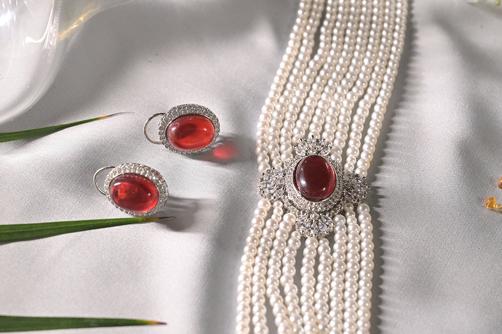 Bilvani Moroccon Lariat Gemstone Pearl Choker Necklace