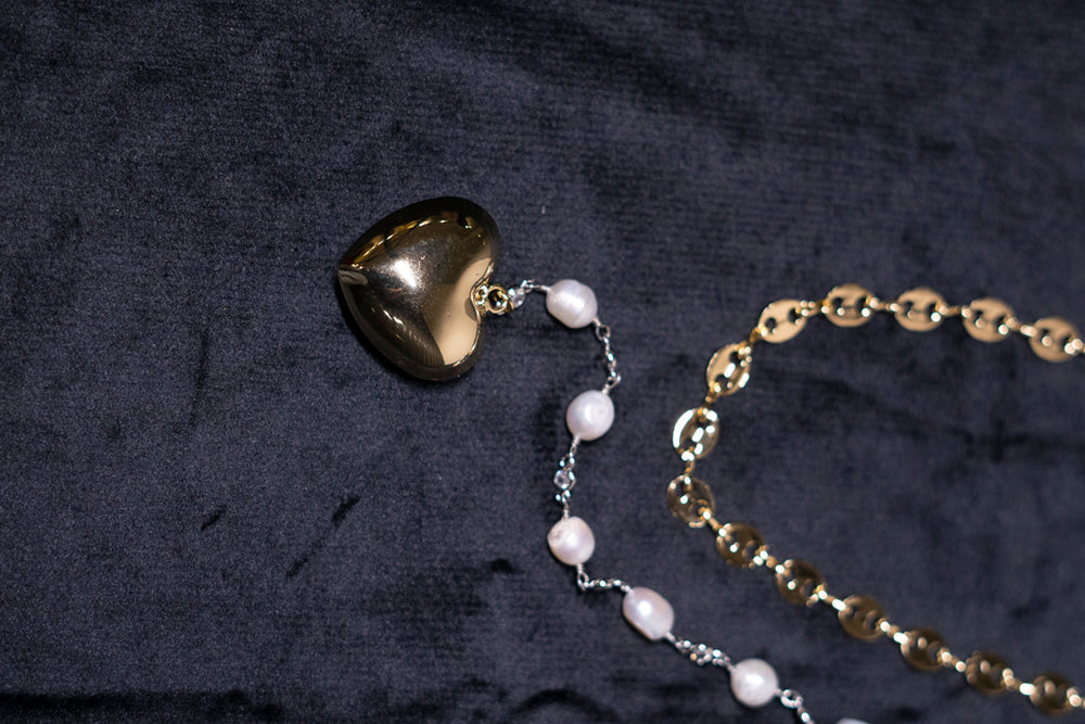 Material: This fashionable, handcrafted, artificial, imitation, designer, exquisite, made up of metal alloy, and has beautiful white beads, a cute golden heart hanging, and high-quality gold polish and finish.