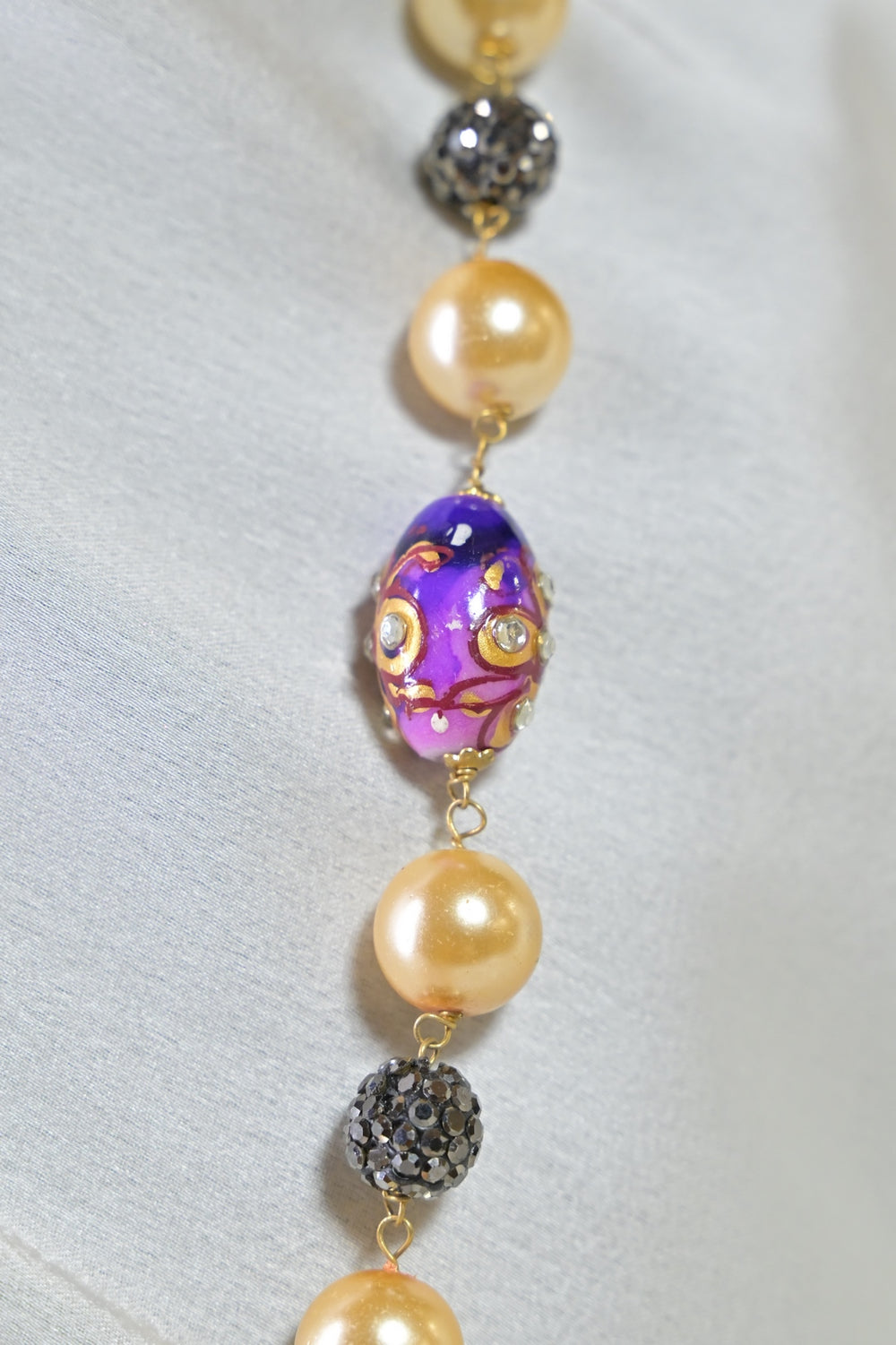 Material: These artificial imitation high fashion on-trend designer faux pearl necklace are made of high-quality metal alloy multicolored beads.