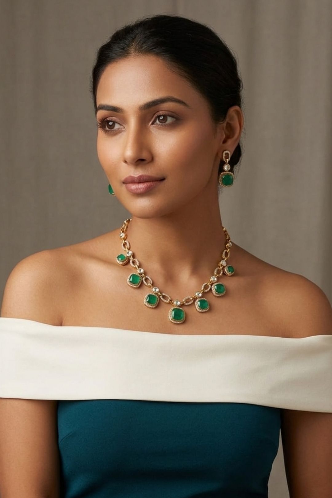 Goldleaf Emerald Charms Polki Necklace