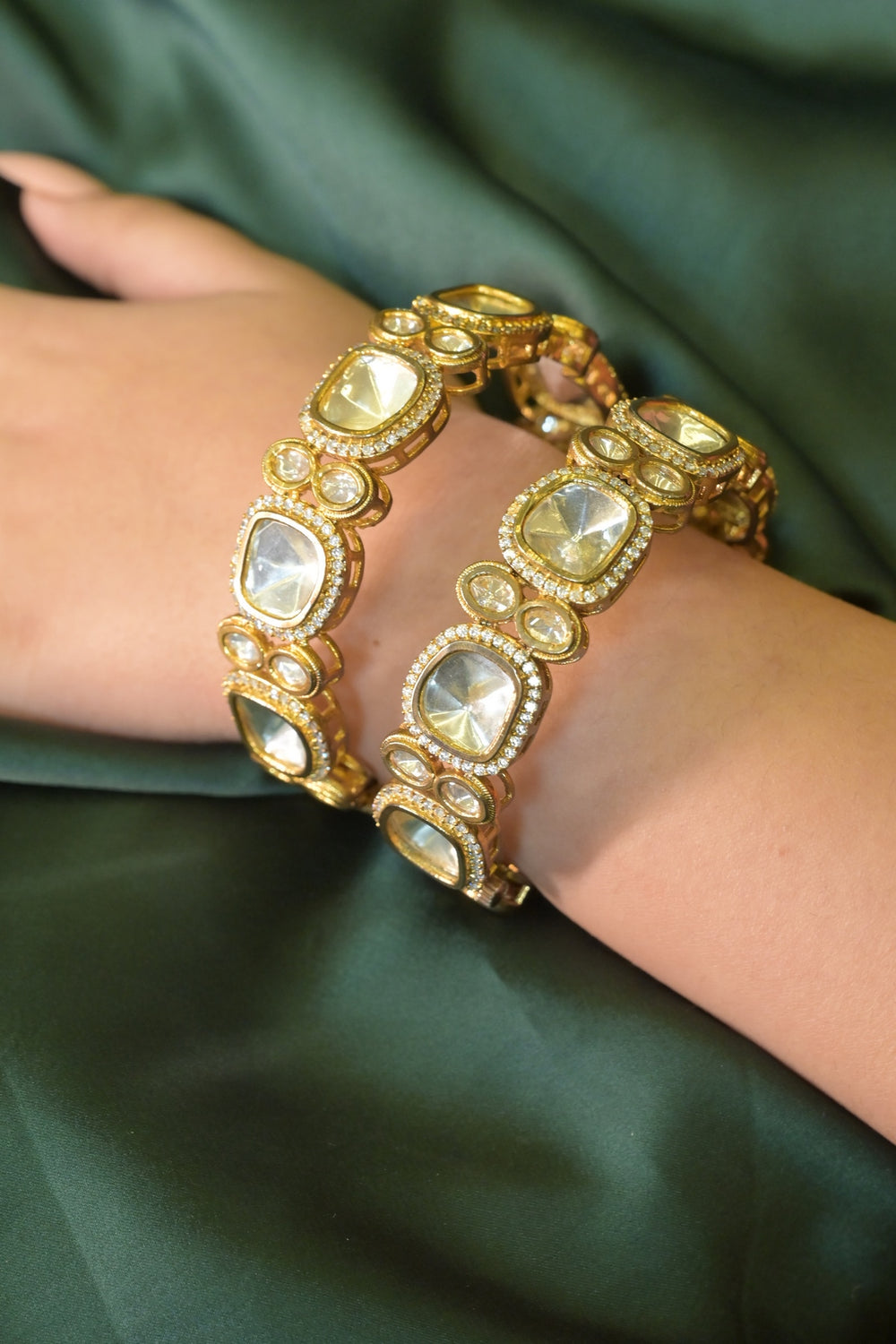 Meticulously designed with intricate detailing, it features a lustrous finish and traditional Indian artistry, making it the perfect accessory for weddings, poojas, festivals, and special occasions. Whether worn solo or paired with a set, the Subhar Shringar Bangle completes your look with grace and sophistication.
