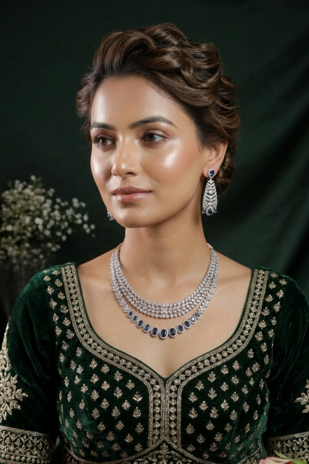 Flora Emerald Green Diamond Chokar Necklace