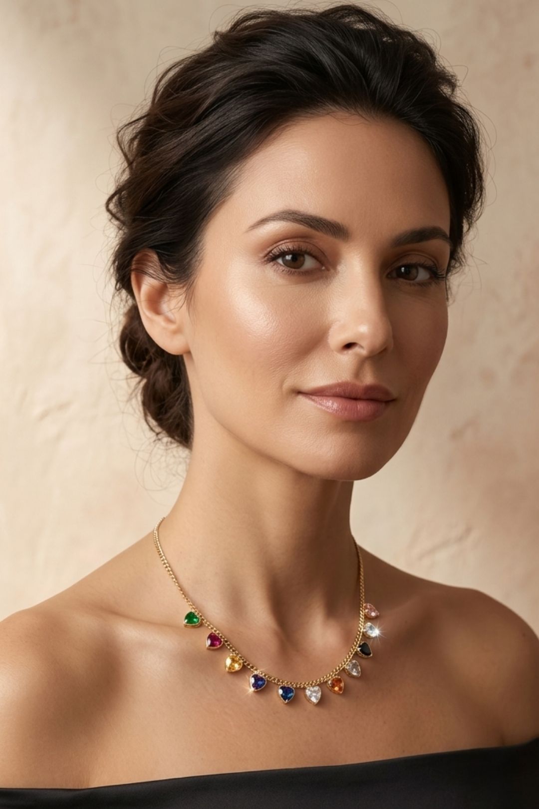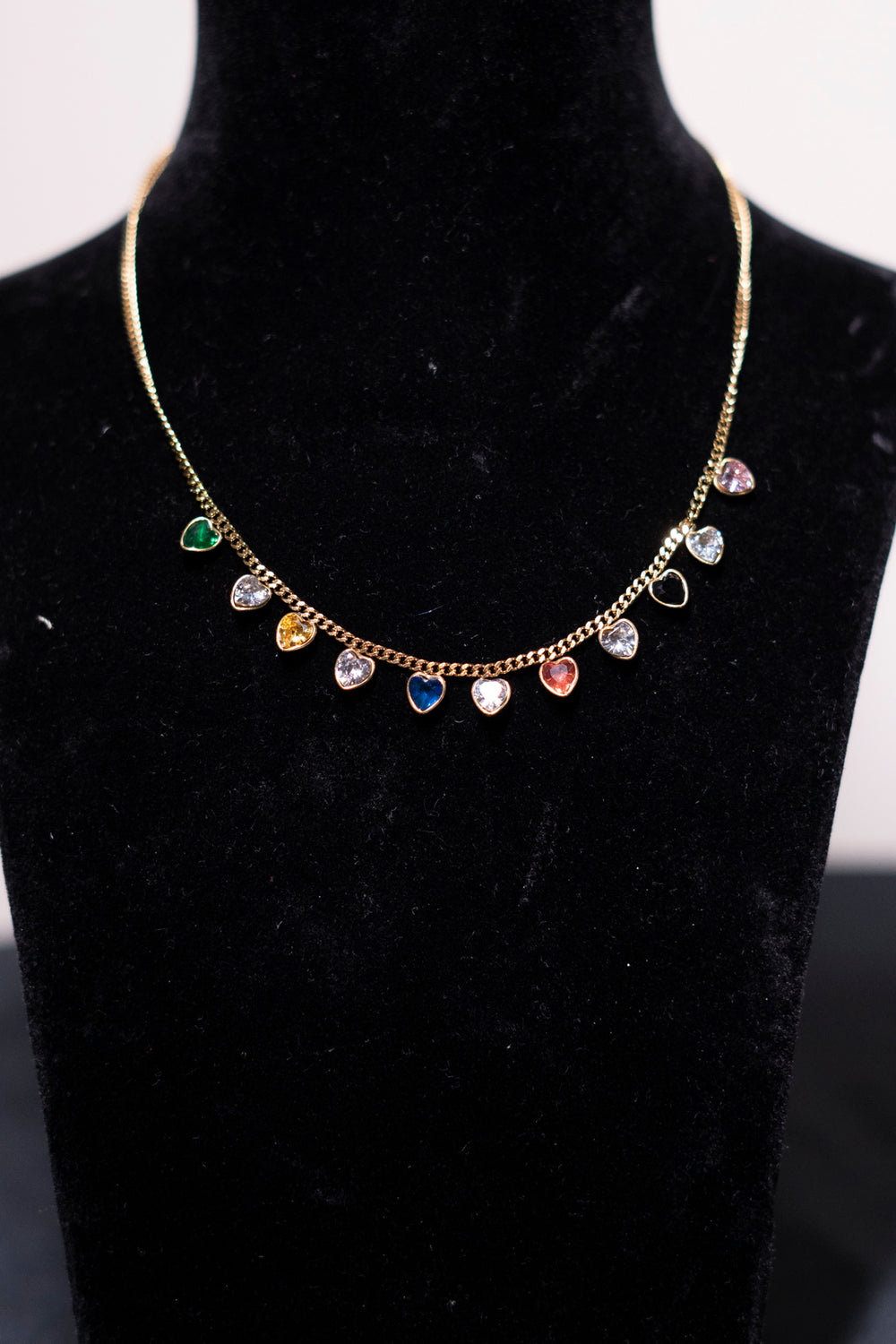 Multicolored Heart Charms Golden Chain Necklace