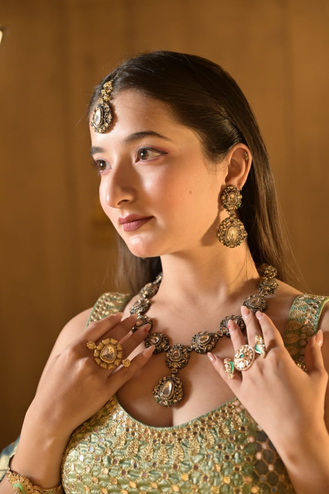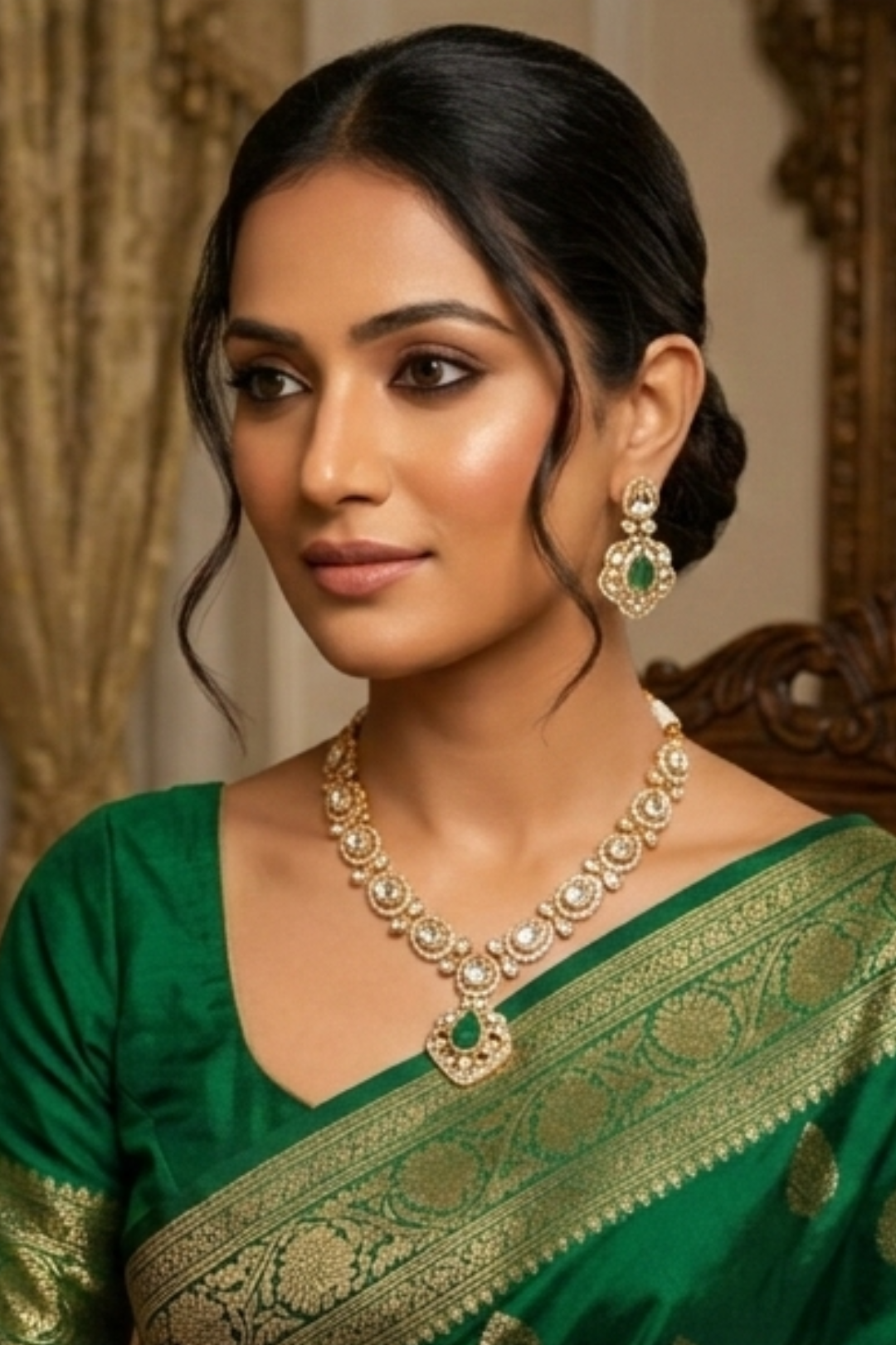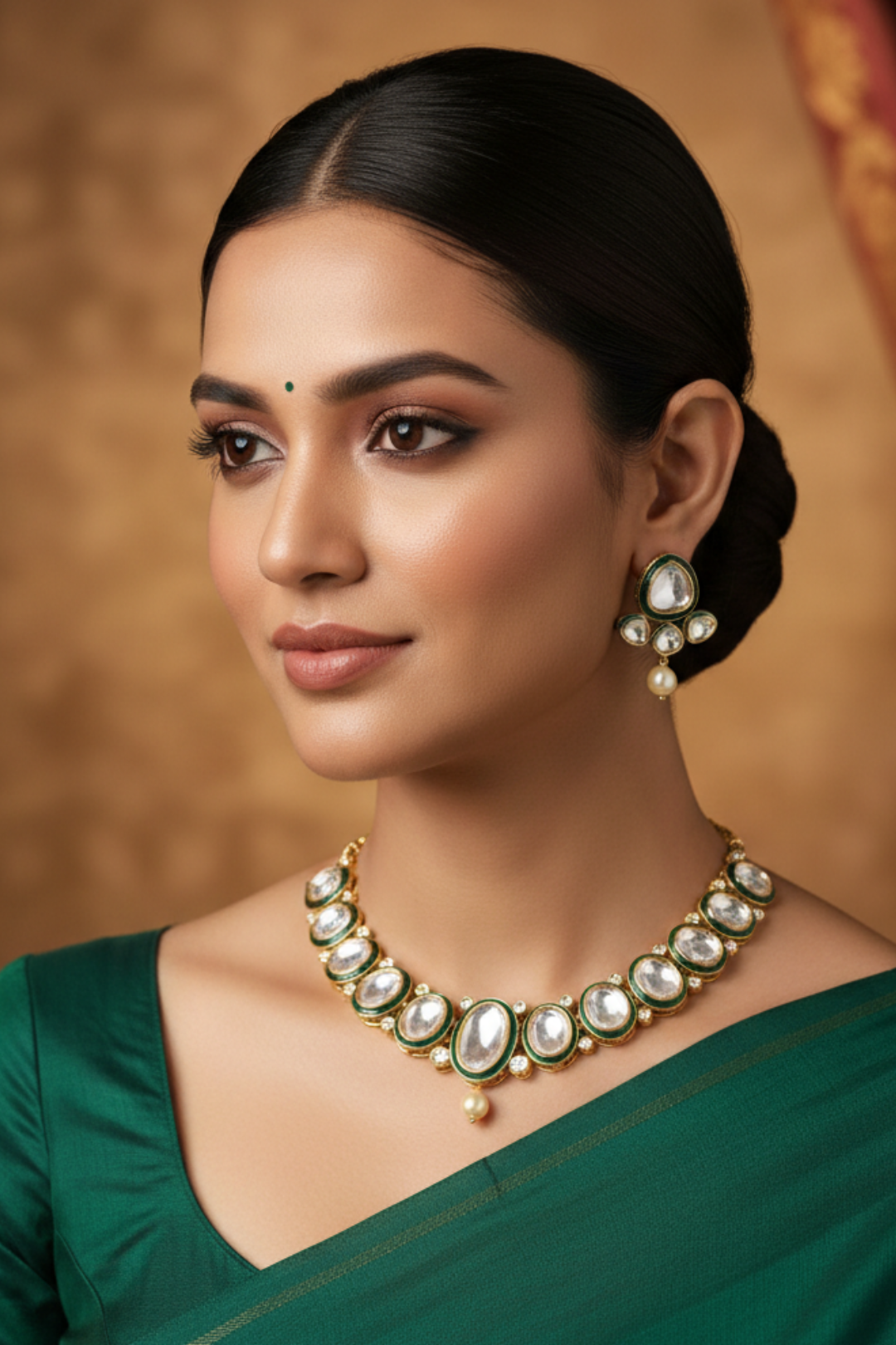 Gulbahar Bridal Polki Kundan Emerald Necklace