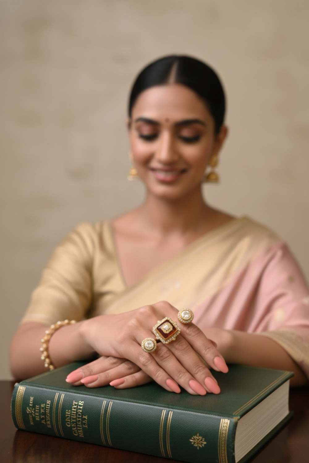 Maharani Bindumati Mehndi Three-Finger Polki Ring