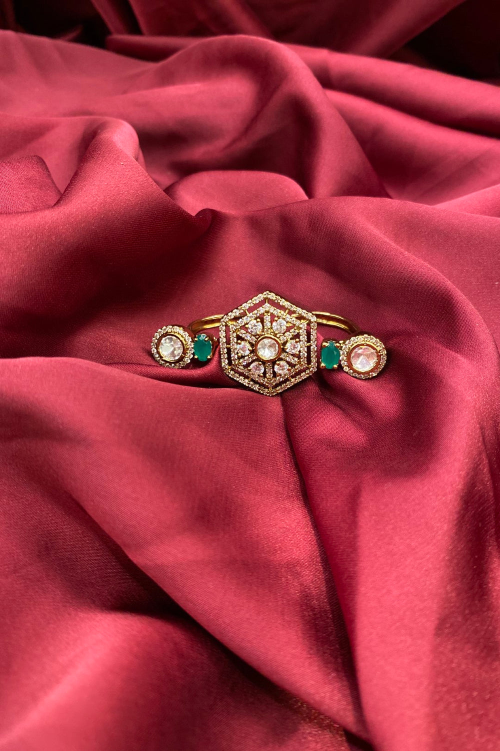 Maharani Vidya Mehndi Kundan Double Band Ring