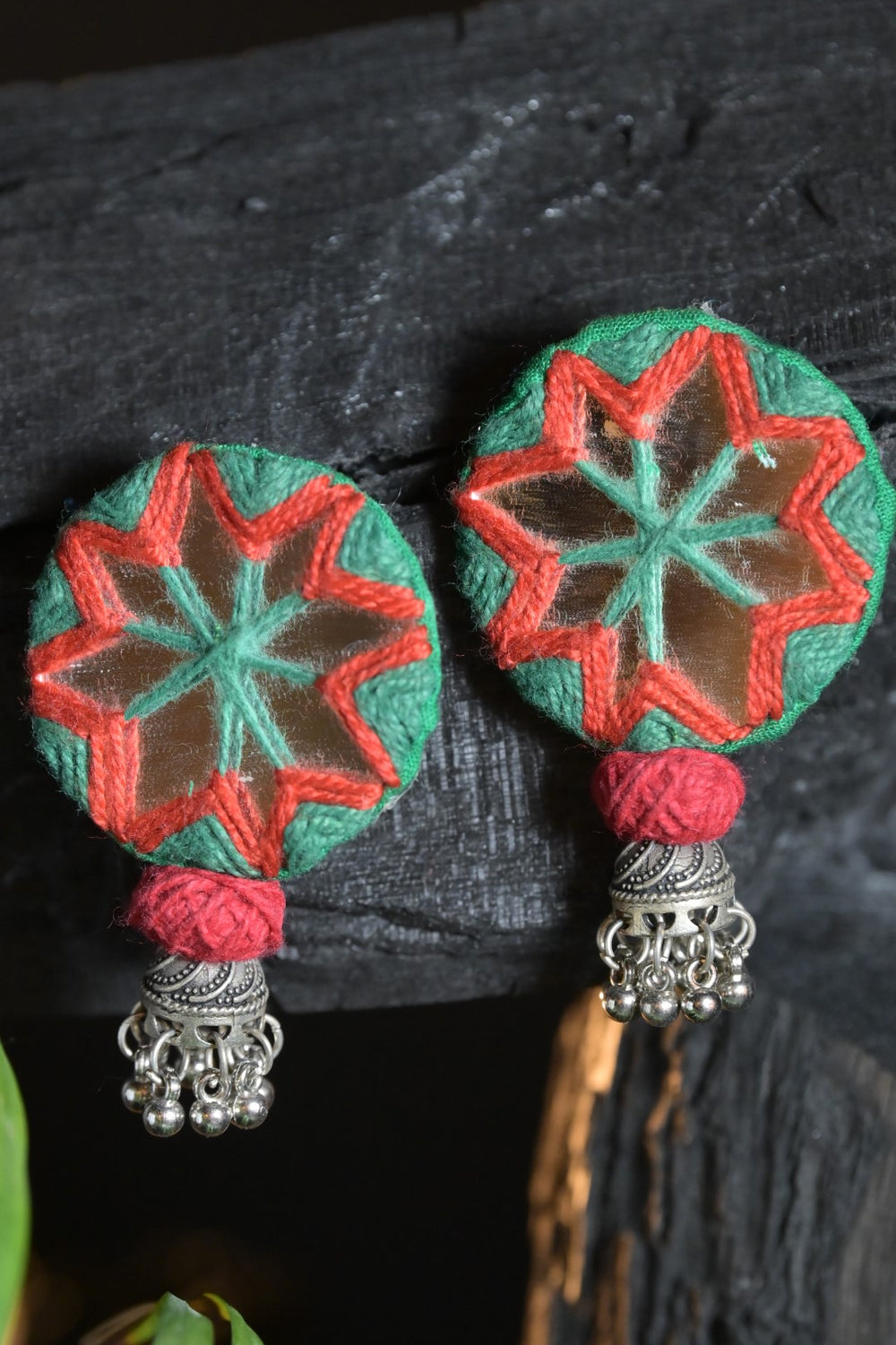 Brahma Chakra Multicolored Silver Jhumka Earrings