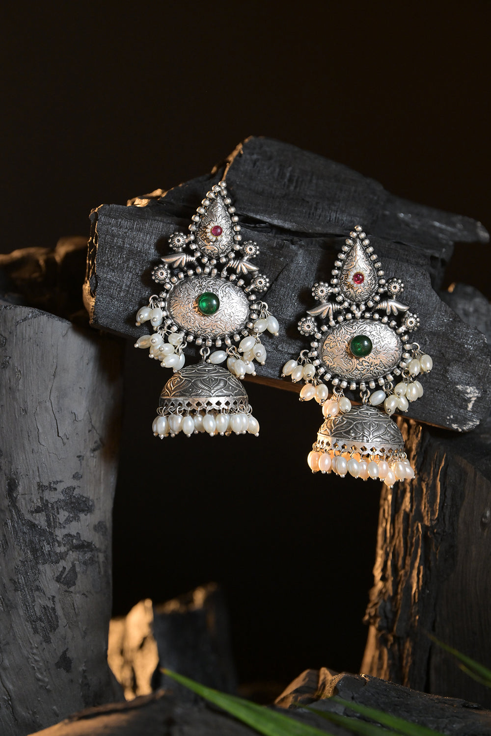 Meera's Silver Jhumka Earrings