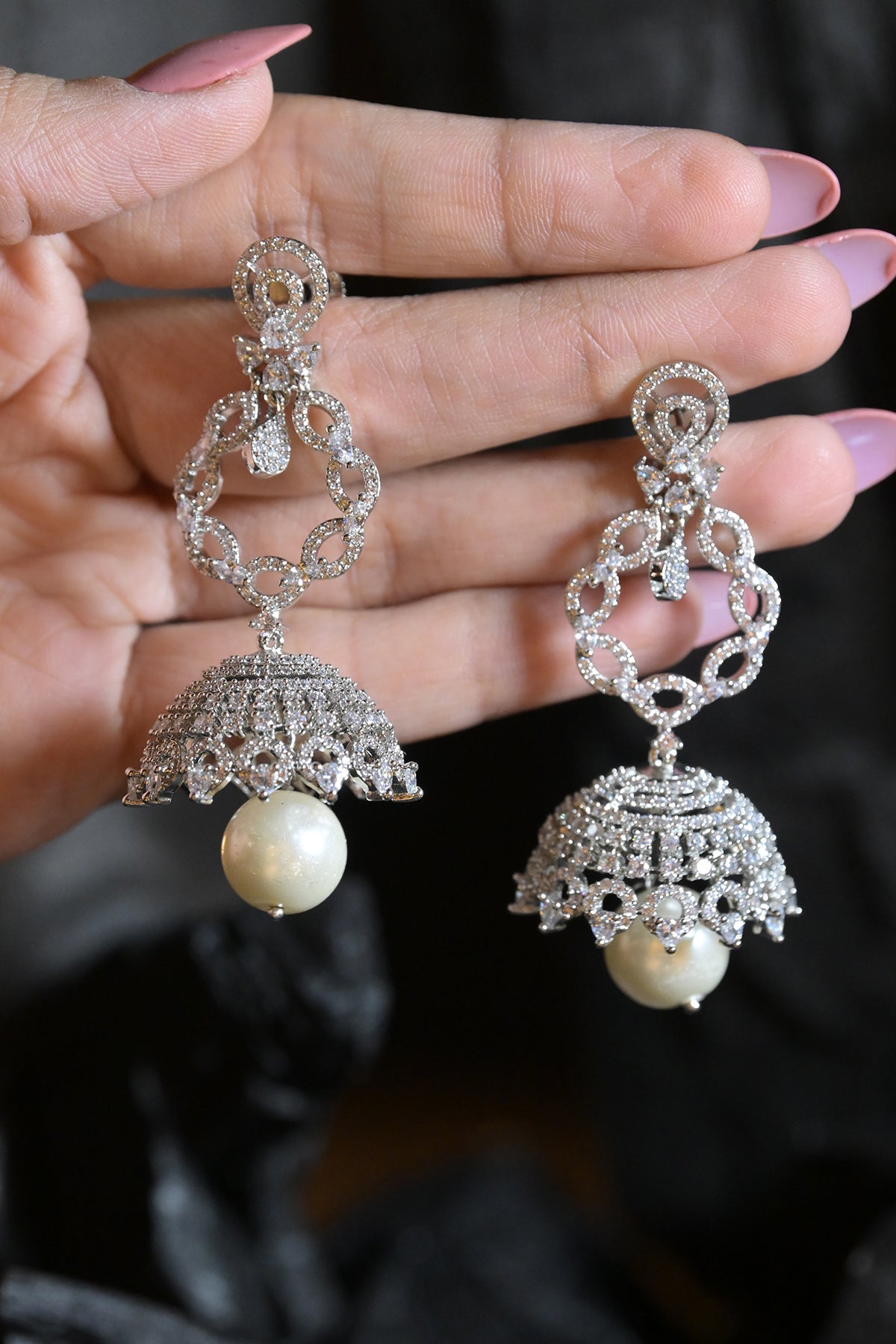 Material: These artificial imitation designer faux diamond jhumkas are made of high-quality metal alloy, featuring intricate peacock motifs and adorned with delicate faux pearls. Finished with fine meenakari detailing and a premium rhodium polish, they reflect cultural richness and classic charm.