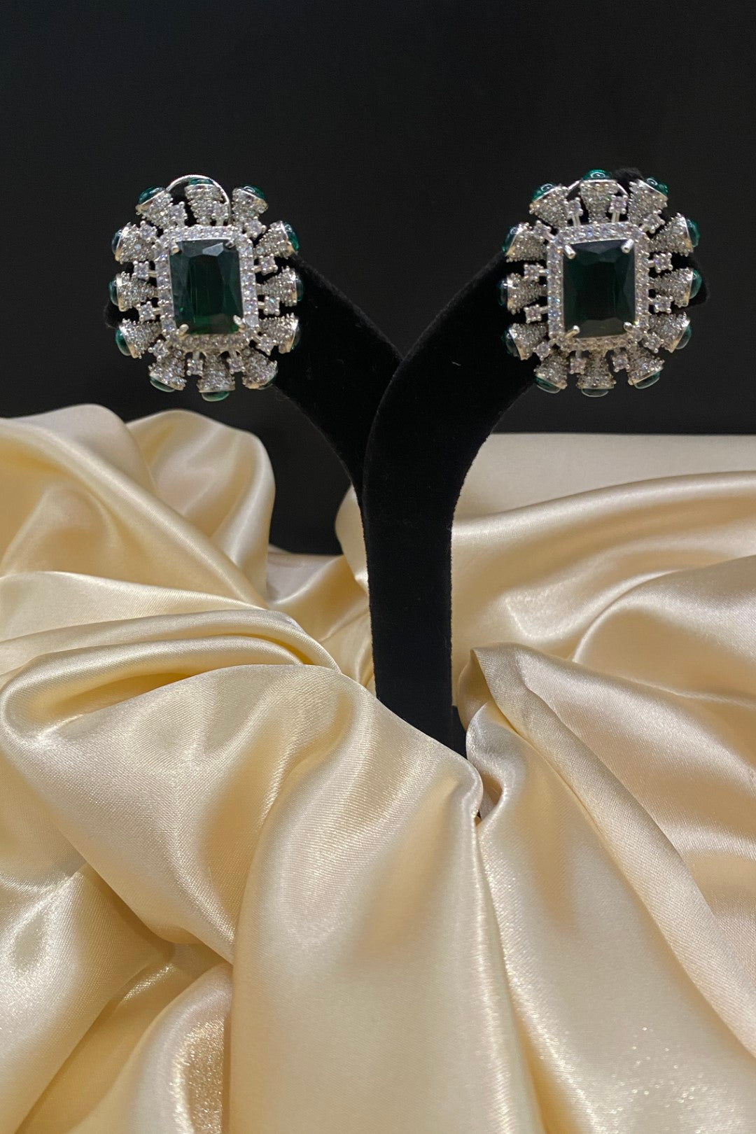 This layered and signature style ,Rajwadi Statement Cocktail Diamond Necklace , is studded with American Diamonds/ CZ Diamonds,comes with matching diamond earrings and sapphire emerald gemstones cluster. It is a perfect blend of heritage and elegance for the modern bride suitable to give her a fancy statement and luxury vibes. The american diamonds in this necklace are arranged in a stroke pattern, creating a powerful statement piece.This vintage style necklace is fit to be worn as a contemporary,unique, bollywood-inspired, festival-ready, jewellery piece to wear to any wedding, sangeet, cocktail, engagement, mehndi, haldi, anniversary, gifting purposes. It is a perfect wedding wear which has the perfect blend of heritage and elegance for the modern bride, or bride's mother, or groom's mother or sister.