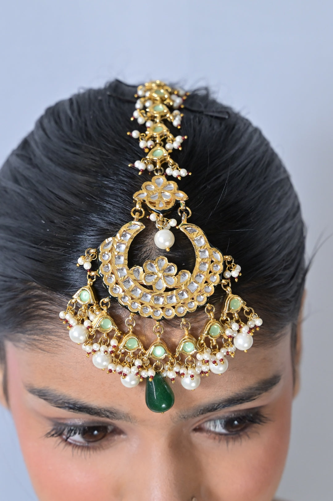 Chaandani Kundan Bridal Pearl Emerald Maangtika