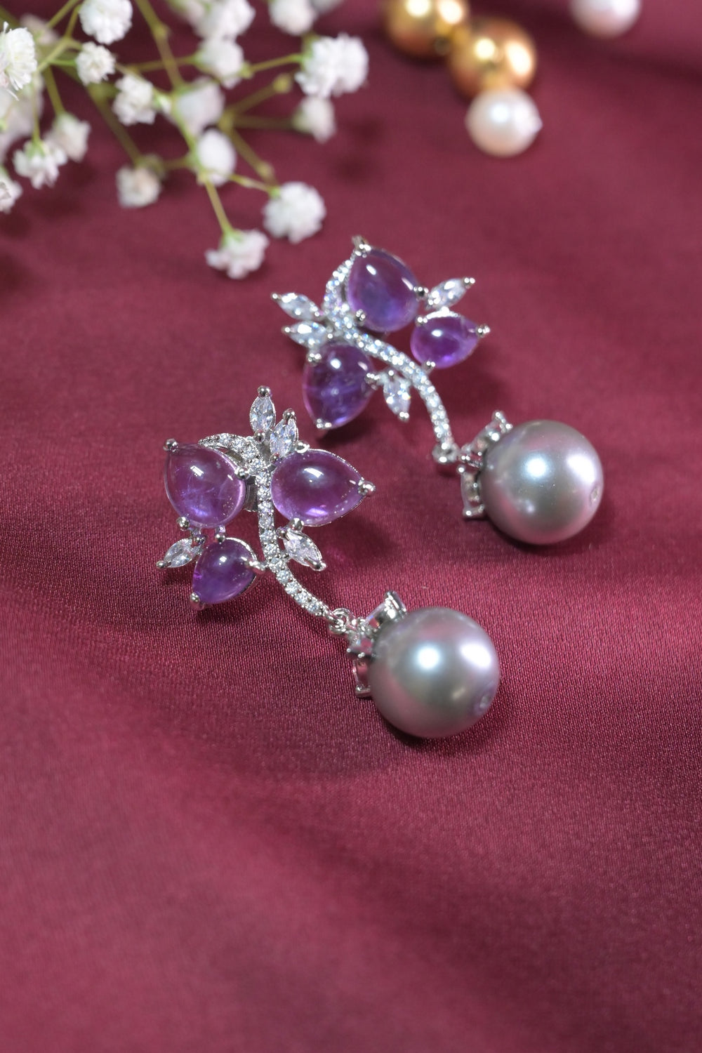 Hyacinth Leaf Shaped Grey Drop Earrings