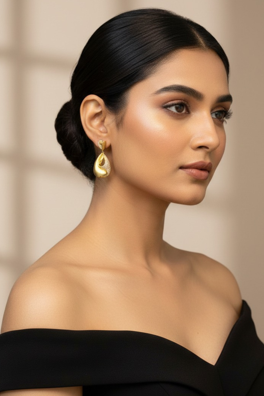 Step into elegance with our Gold Bling Drop Earrings and add these to your jewellery collection for that delicate yet classy, minimalist, lightweight, daily wear, statement yet petite, casual yet trendy, boho look. These affordable gold dubai bling earrings are a must haves for party wear, casual wear, college wear, office wear or cocktail or anniversary or gifting purposes.
